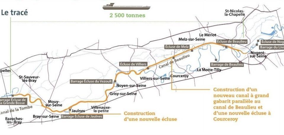 En augmentant le gabarit de navigation sur 28,5km, le projet Bray-Nogent permettra d’assurer une continuité de l’axe de navigation pour les bateaux de 2500 tonnes, depuis les ports du Havre et de Rouen jusqu’à celui de Nogent-sur-Seine.